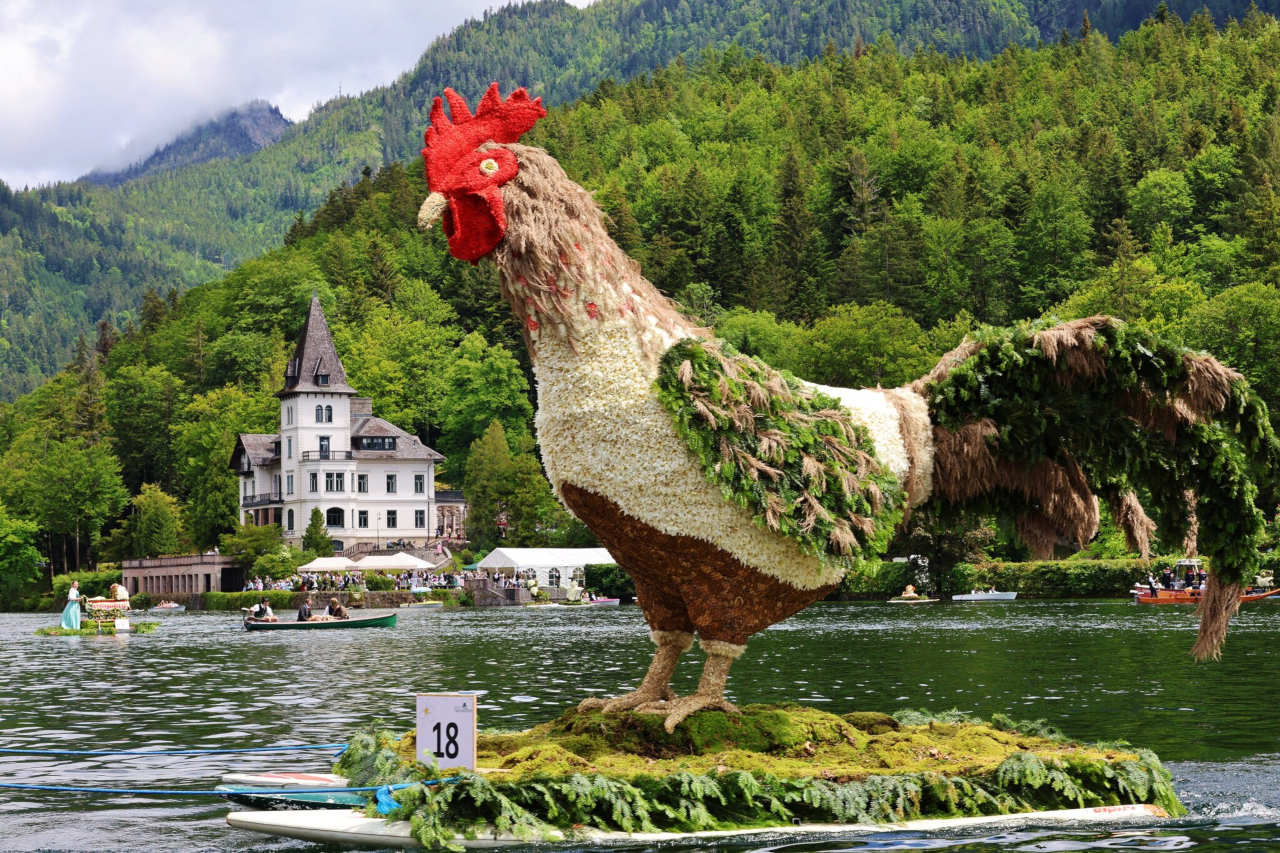 Ab 9:00 Uhr am 1. Juni findet der Hauptevent mit dem Blumenumzug und dem Werfen von Blumensträußen auf dem Grundlsee statt.