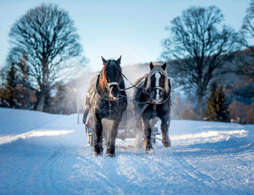 Eine Pferdeschlittenfahrt kann ein wahrhaft romantisches Erlebnis in der wunderschönen, verschneiten Landschaft sein. Eingehüllt in eine weiche Decke, das Gleiten des Schlittens genießen, den Geräuschen des Winterwaldes lauschen und die Bergwelt näher kennenlernen – ein unvergessliches Erlebnis!